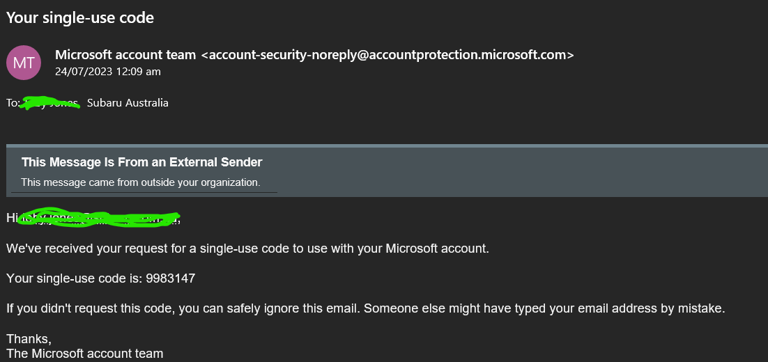 Are Microsoft "SingleUse Code" Emails a Security Risk?