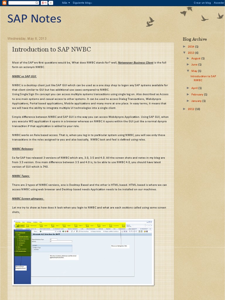 SAP Notes Introduction To SAP NWBC PDF Tab (Gui) Html