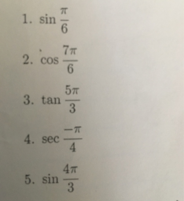 Solved Sin pi/6 cos 7 pi/6 tan 5 pi/3 sec pi/4 sin 4
