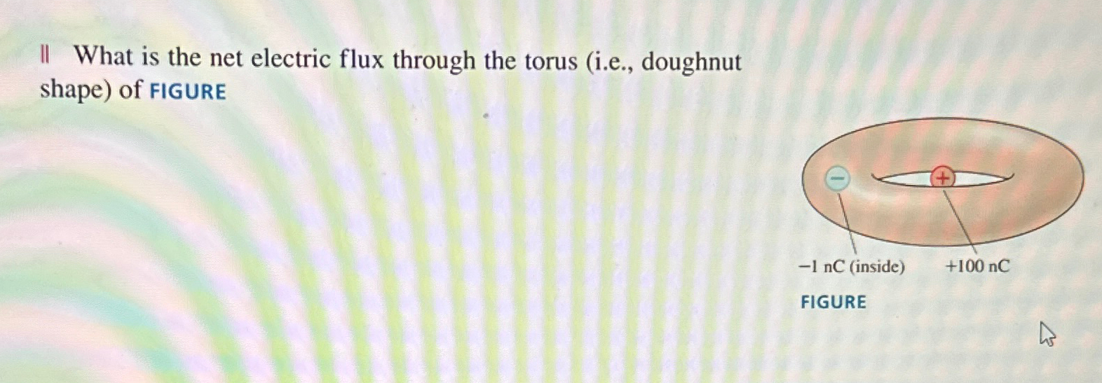What is the net electric flux through the torus (i.e., doughnut shape) of the figure (figure 1) ? The net electric flux through the torus can be calculated using gauss's law, which relates the total charge enclosed to the electric. Gauss's law states that the net electric flux through a closed surface is proportional to the charge enclosed by that..