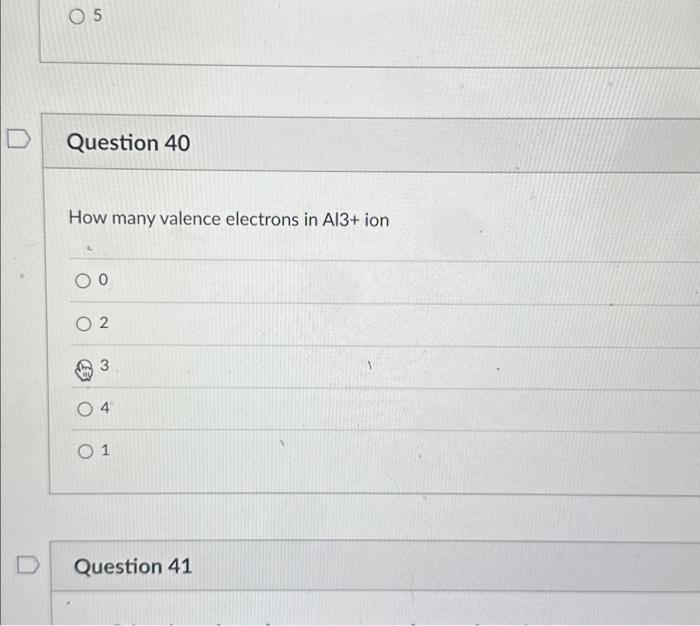 Solved 05 Question 40 How many valence electrons in Al3+ ion