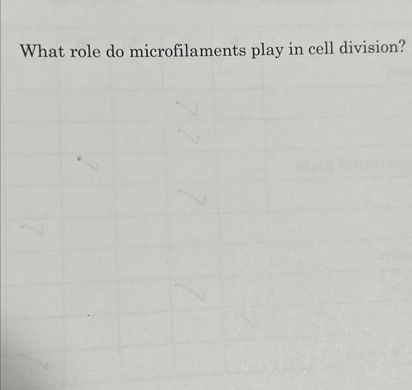 The role of microfilaments extends beyond motility and division; What is the role of microfilaments in cell division? Microfilaments, composed of actin protein, play a key role in cell division by aiding in the formation of the cleavage furrow during. During cell division, microfilaments help to: The photo below shows several onion root tip cells undergoing mitosis.