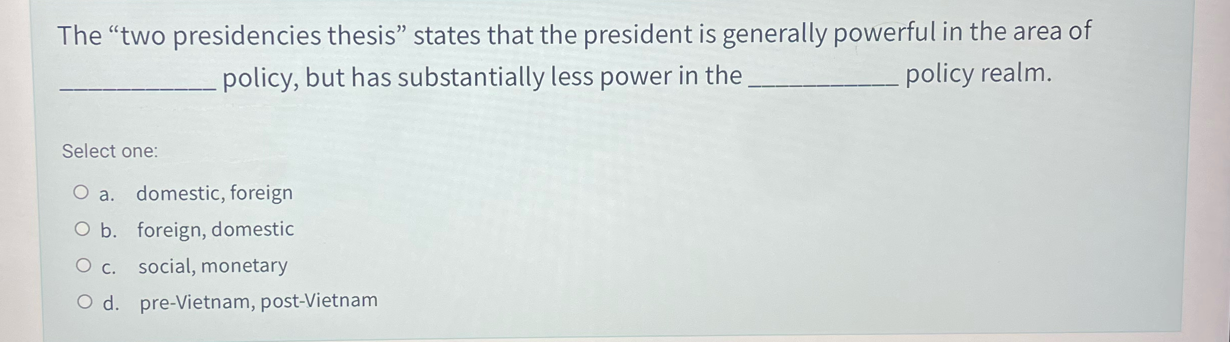 SOLVED Please define the "two presidencies thesis." List and discuss