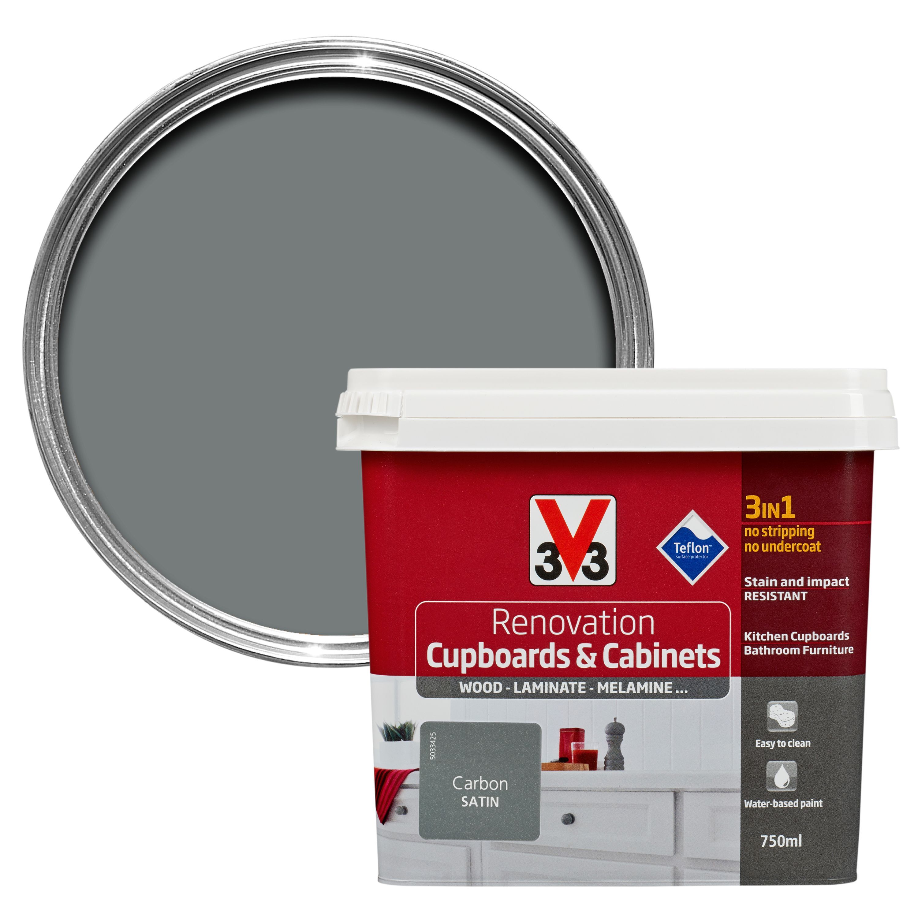 V33 Renovation Carbon Satin Kitchen cupboard & paint 750 ml
