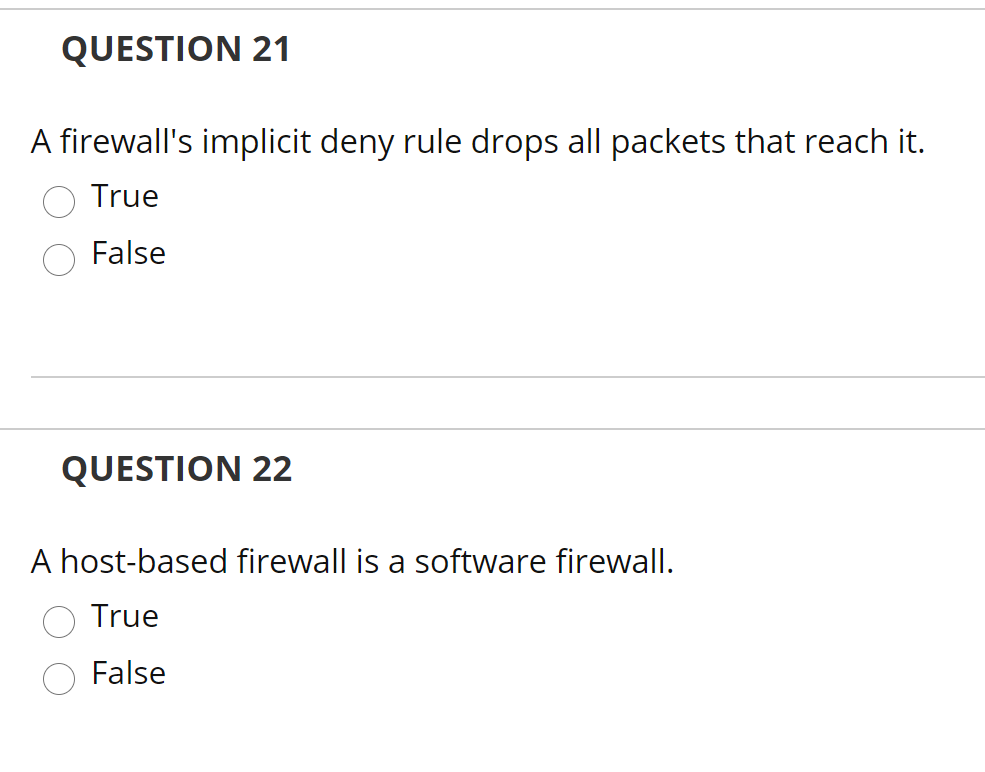 Solved QUESTION 21 A firewall's implicit deny rule drops all