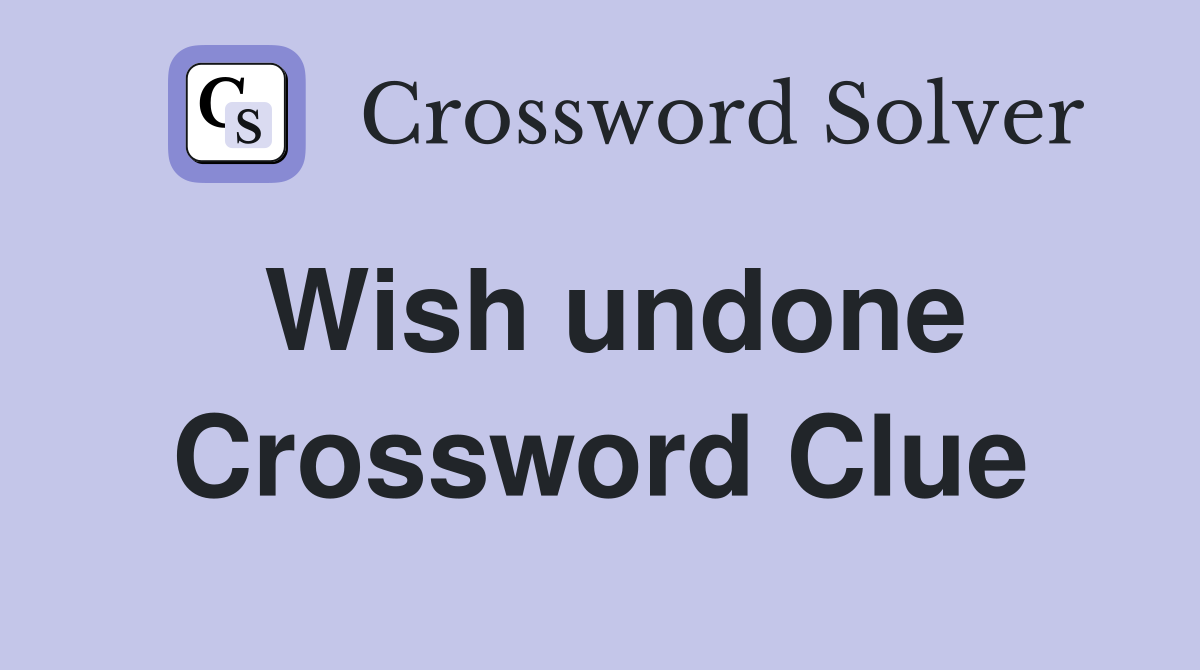 We found the following answers for: We found the following answers for: Please find below the wish it undone answer and solution which is part of daily themed crossword january 16 2019 answers. Wish it undone crossword clue. Wish to do something crossword clue.