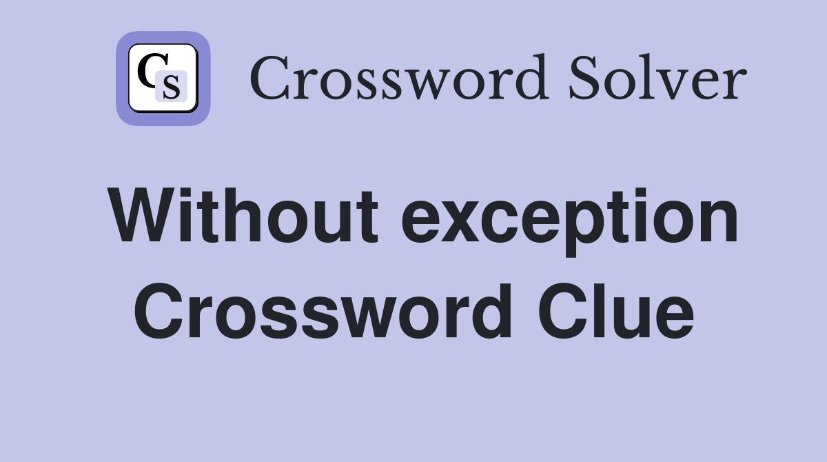 Search for crossword clues found in the daily celebrity, ny times, daily mirror,. On this page you will find the without exception crossword clue answers and solutions. We will try to find the right answer to this particular crossword clue. Without exception is a crossword puzzle clue that we have spotted over 20 times. The most common solutions for the.