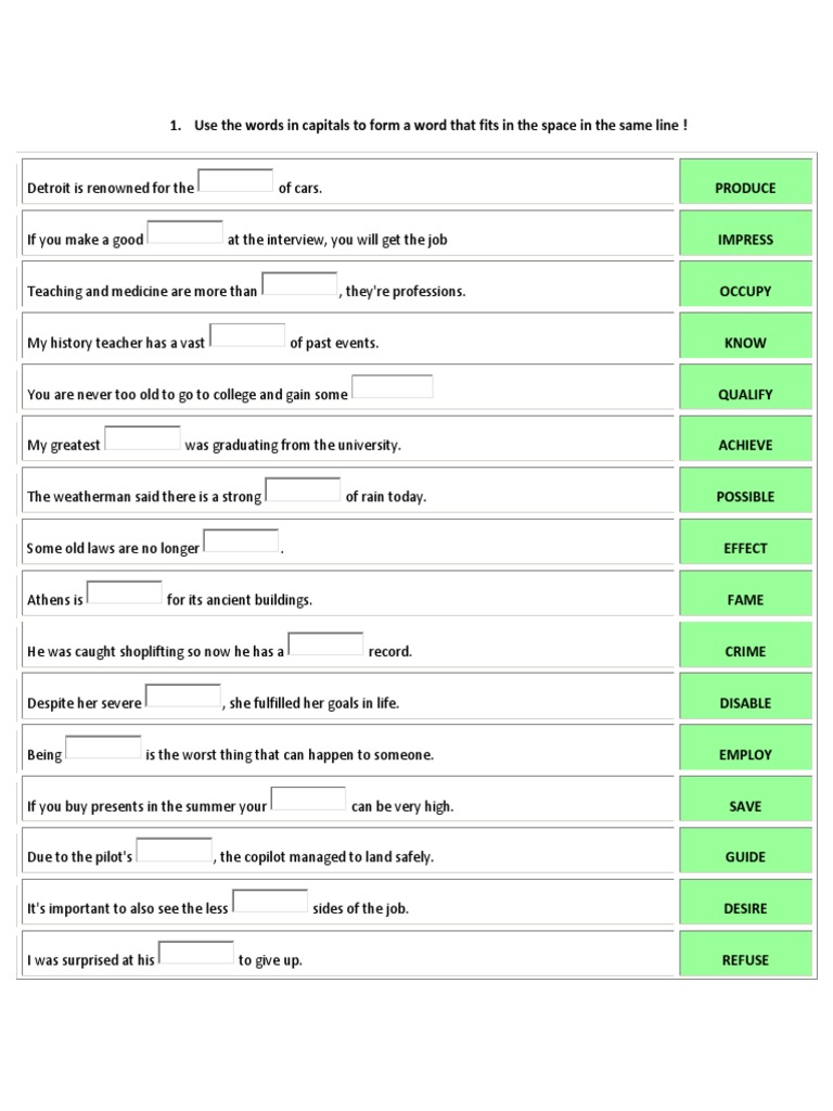 35 Quick Word Formation Exercises With Answers.