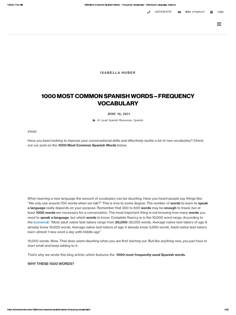 1000 Most Common Spanish Words Frequency Vocabulary Strømmen