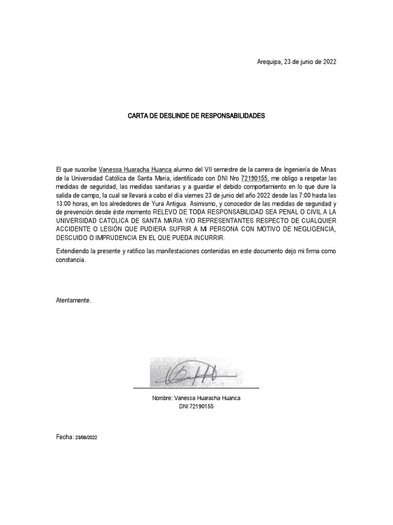 Carta Deslinde de Responsabilidad PDF