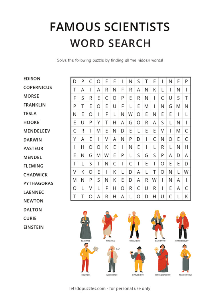 Customize your own printable hidden word puzzles using the superkids wordsearch. Check out this fun free famous scientists word search, free for use at home or. The famous scientists in this word search have changed the way people view the world. This word search puzzle celebrates some of the greatest scientists in history, including those. Celebrate the brilliance of renowned scientists as you search for their names in this educational.