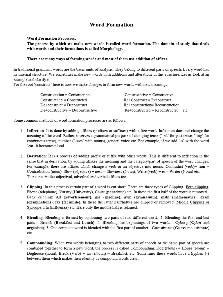 Word Formation Online Lesson Final PDF Word Part Of Speech