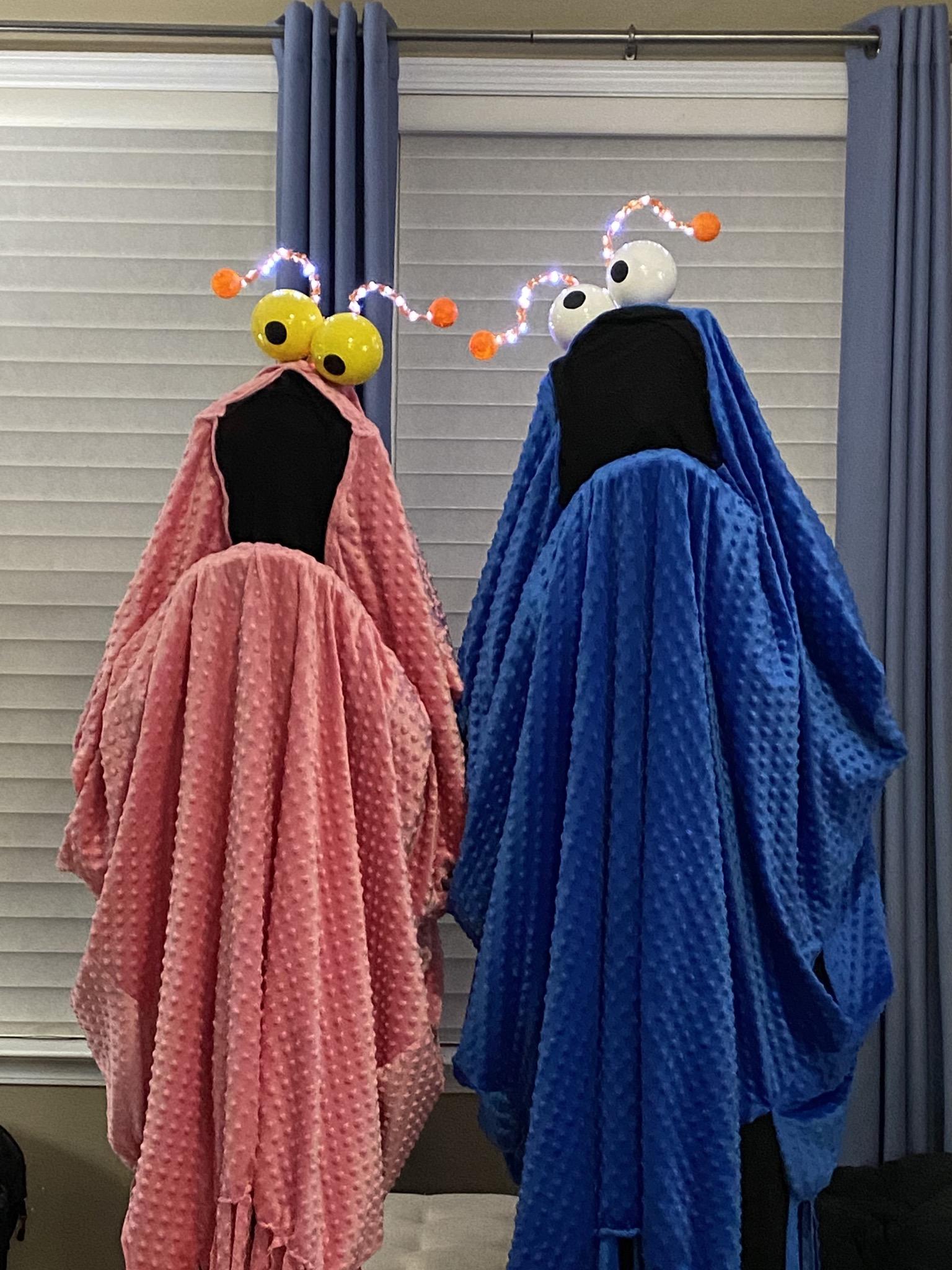 Sesame Street Yip Yip costume made with a blanket and styrofoam eyes